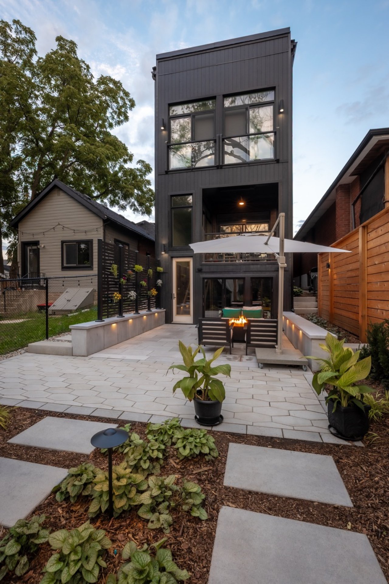By “micro-zones,” we’re talking about distinct outdoor rooms for lounging, dining, or huddling around the fire. Pair those spaces with integrated, low-voltage LED lighting, and these areas come alive after dark without adding any real upkeep.